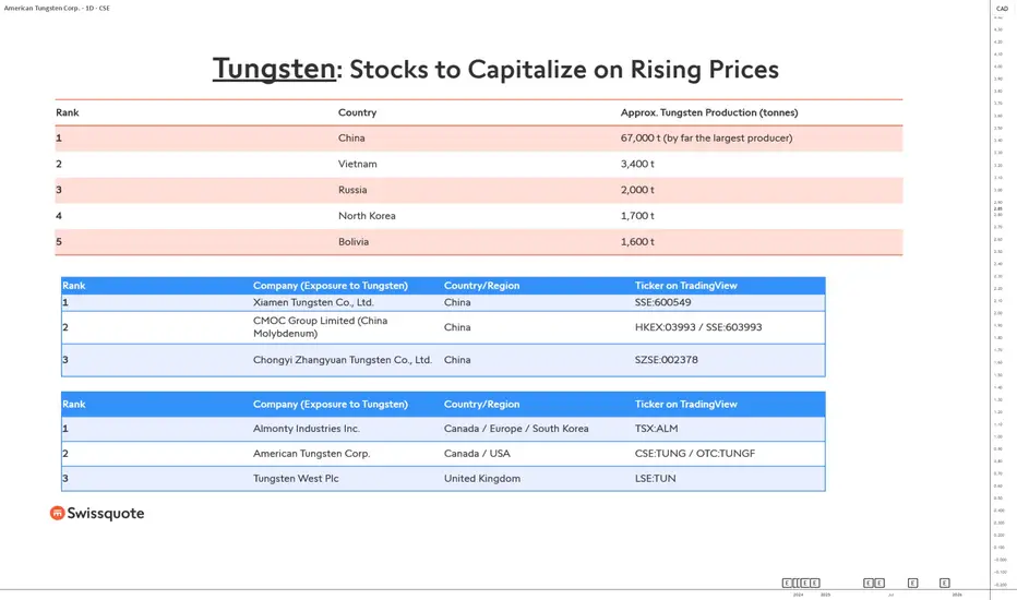 However, tungsten is a rare strategic metal. China is the world’s leading producer and alone accounts for about 80% of global supply. The United States will make every effort to expand its production, but supply constraints will likely persist over the coming years, putting upward pressure on prices. It is not possible to gain direct exposure to tungsten on the stock market as one can with gold or silver.