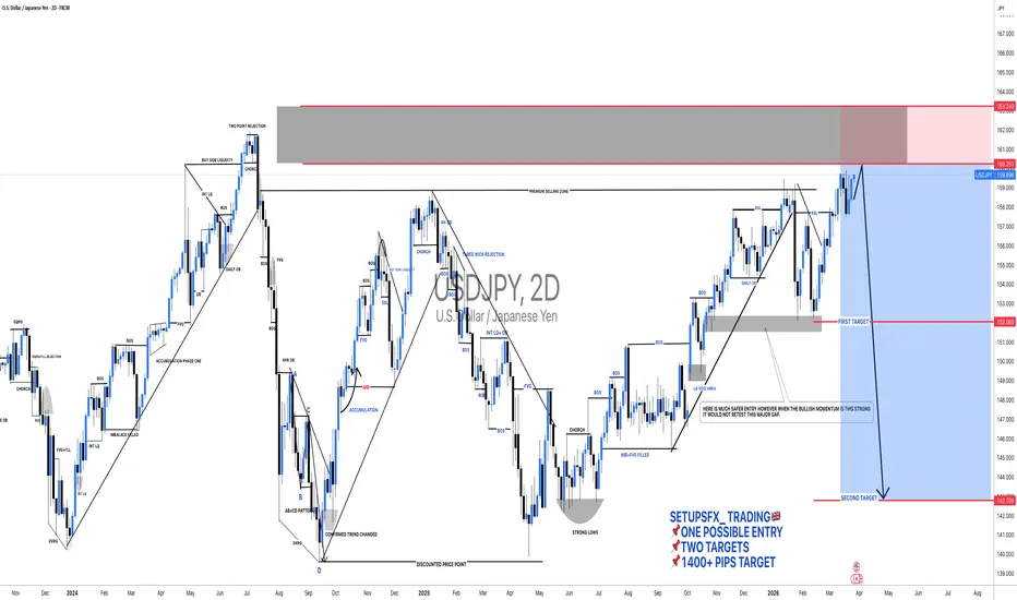 🔺The USDJPY is currently trading at 159.668 which is near our entry zone. We recommend entering around this price. Once entered, a stop loss and two take profit targets are placed for a significant move. This is a swing trade and is unlikely to complete in a short time. Please keep this in mind when making your decision.