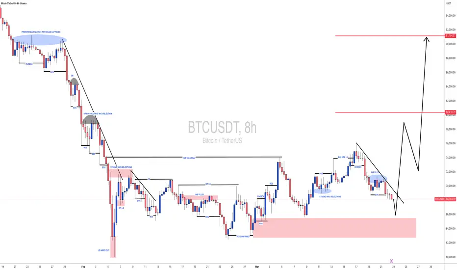 🔺Following a significant market correction from its peak of 66,000, a potential upward price movement is anticipated. This price level is characterised by substantial bullish volume. Our short-term objective is to reach 200,000.