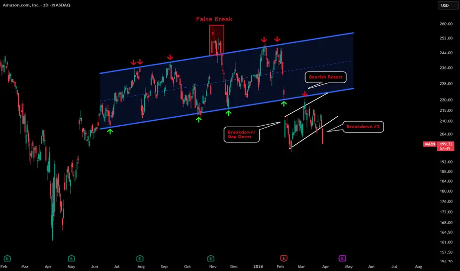 Amazon has now seen its second breakdown of the smaller bear flag on the daily chart.