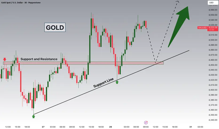As long as price holds above the 4,460 support zone, the broader bullish structure remains intact, and we anticipate a continuation move toward higher resistance levels as safe-haven flows and macro uncertainty continue to support the upside.