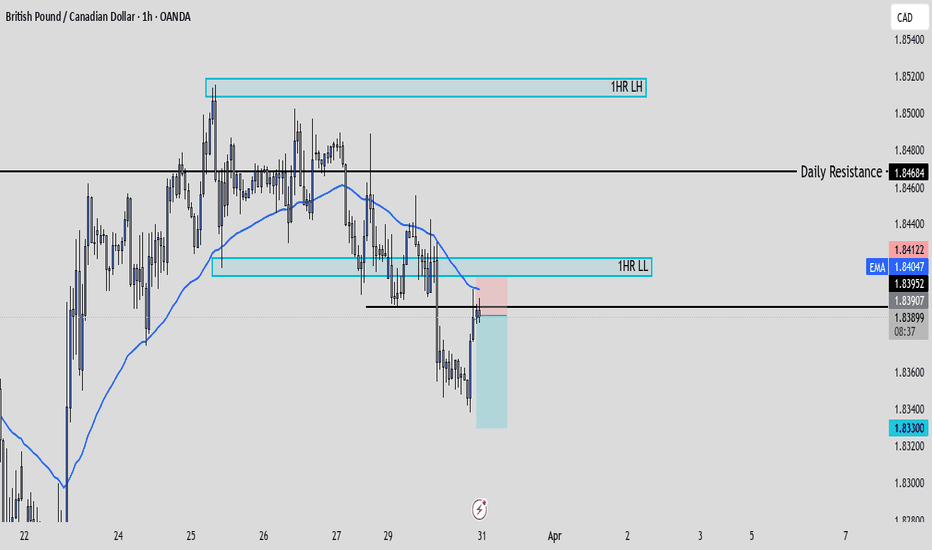 GbpCad Trade IdeaGC was bearish before approaching a daily resistance level. There was a clean bearish flip with structures showing on the 1hr time frame. I simply waited on price to break and retest the 1HR LL to confirm the new change in direction. Once price retested the level I simply waited on the 1hr to go bea