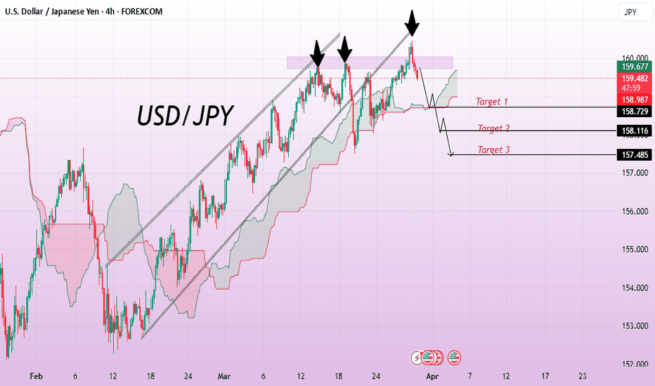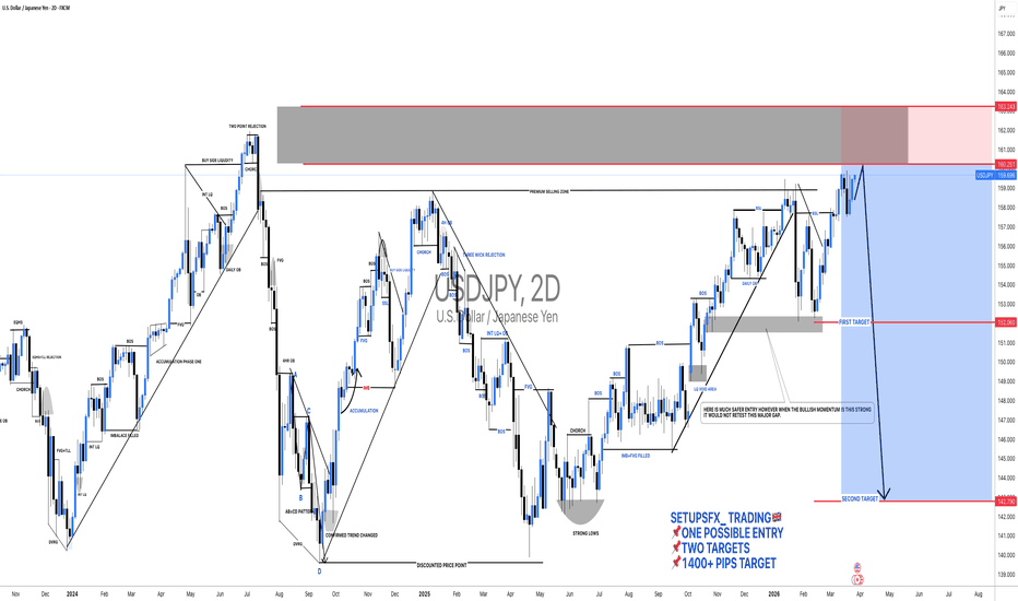 #USDJPY +1741 Pips Upcoming Major Swing Sell!🔺The USDJPY is currently trading at 159.668 which is near our entry zone. We recommend entering around this price. Once entered, a stop loss and two take profit targets are placed for a significant move. This is a swing trade and is unlikely to complete in a short time. Please keep this in mind when