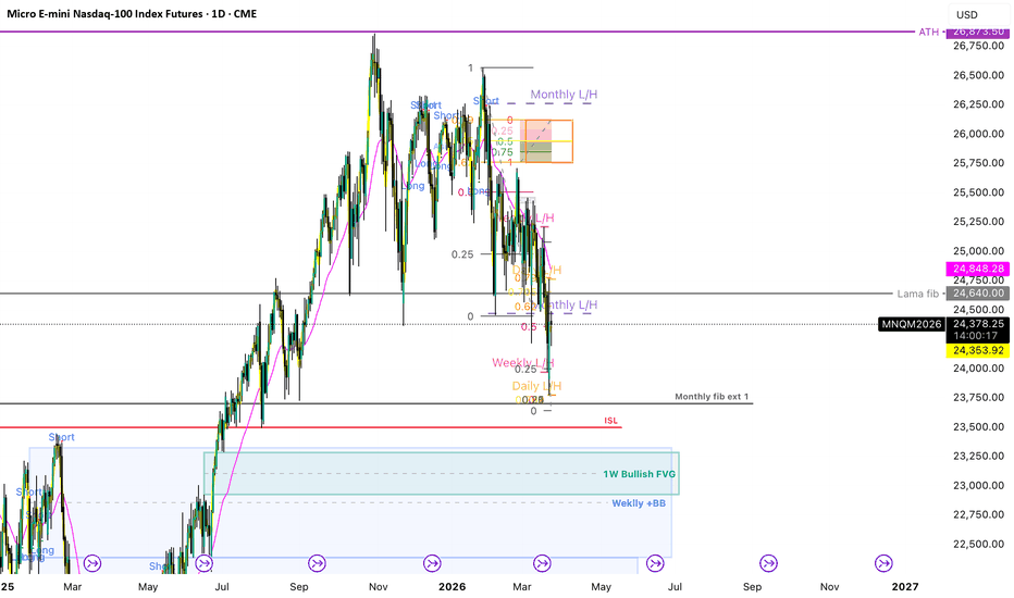 NQ Range (03-25-26)The NAZ Triangle that started in December 2025 update. We did hit the -10% from ATH and U Turned that with a Tweet (1,000 point move in 5m). Danger Zone redirect in the off session, executed perfectly. Looking for upper Turn Zone (Short under) 24,800 should we get another move up. Lower Target is 22