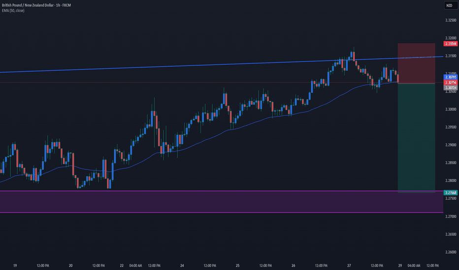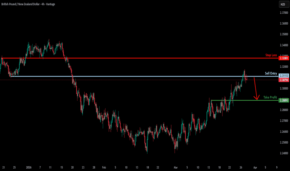 GBPNZD H1 | Pullback Resistance AheadBased on the H1 chart analysis, we could see the price towards our sell entry level at 2.3064, which is a pullback resistance.