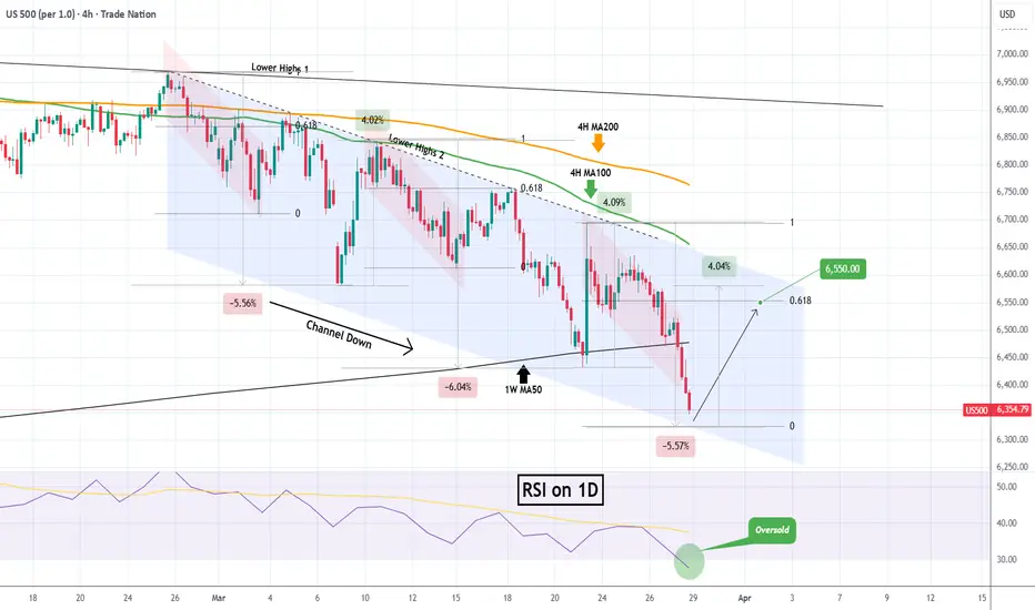 The 6470 Target got hit and now the price is once again at the bottom (Lower Lows trend-line) of the Channel Down, with its 1D RSI oversold (under 30.00). That is a Buy Signal, translating to a potential short-term relief rally (Bullish Leg).