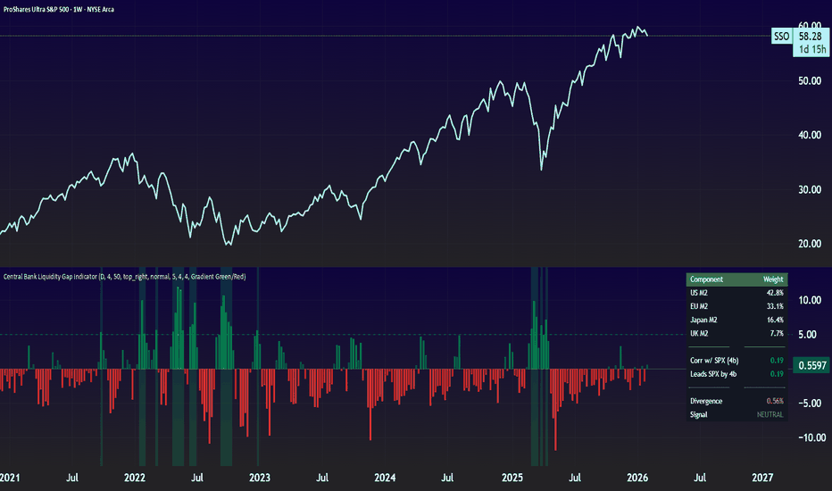 Central Bank Liquidity Gap IndicatorThis indicator measures the gap between global liquidity growth and stock market growth to identify potential buying opportunities.