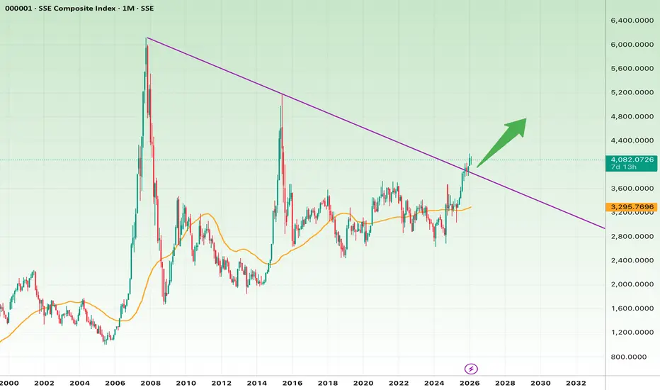 The SSE Composite Index is testing a long-term descending trendline.