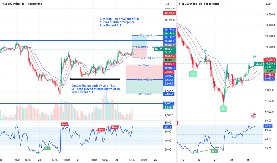 UK100 Update – Buy Stop Breakout SetupBuy stop placed above LH as bullish divergence builds on 1H.