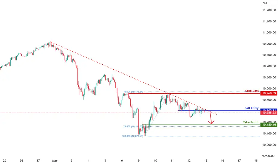 Our take profit is set at 10,180.16, which is a pullback support that aligns with the 78.6% Fibonacci retracement.