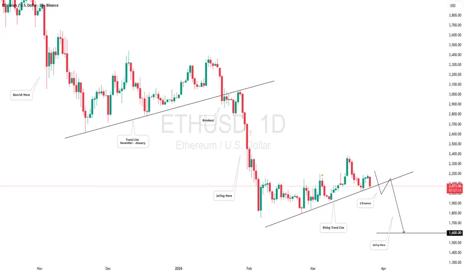 It appears that ⚠️Ethereum formed another historical trend line, which may lead to a significant price decline once it is violated.
