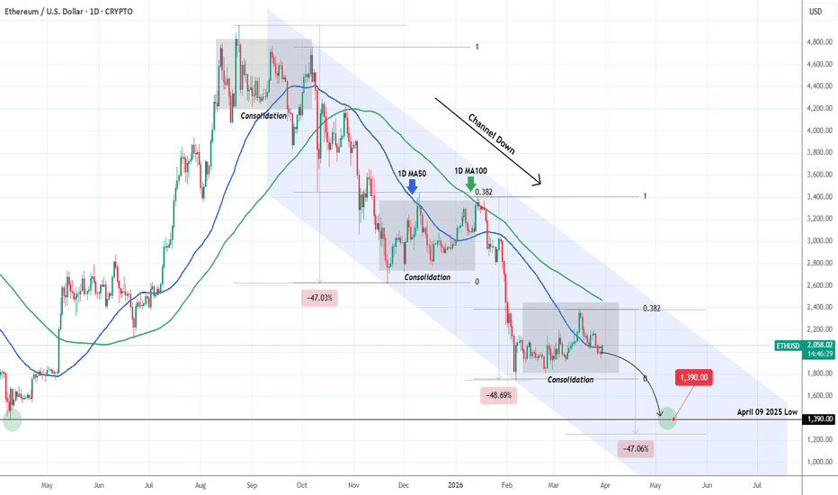 ETHEREUM Bearish Wave no3 is starting.Ethereum (ETHUSD) has been trading within a Channel Down for the entirety of its Bear Cycle since the August 24 2025 All Time High (ATH). This pattern has so far had two Bearish Legs, both strongly symmetrical.