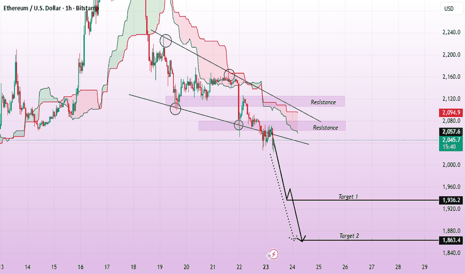 ETHUSD (1H): Forecast Remains BearishEthereum is currently transitioning into a corrective phase after completing a local impulsive structure to the upside. The recent rejection from the highs suggests weakening bullish momentum, with price now showing early signs of distribution on the lower timeframe.