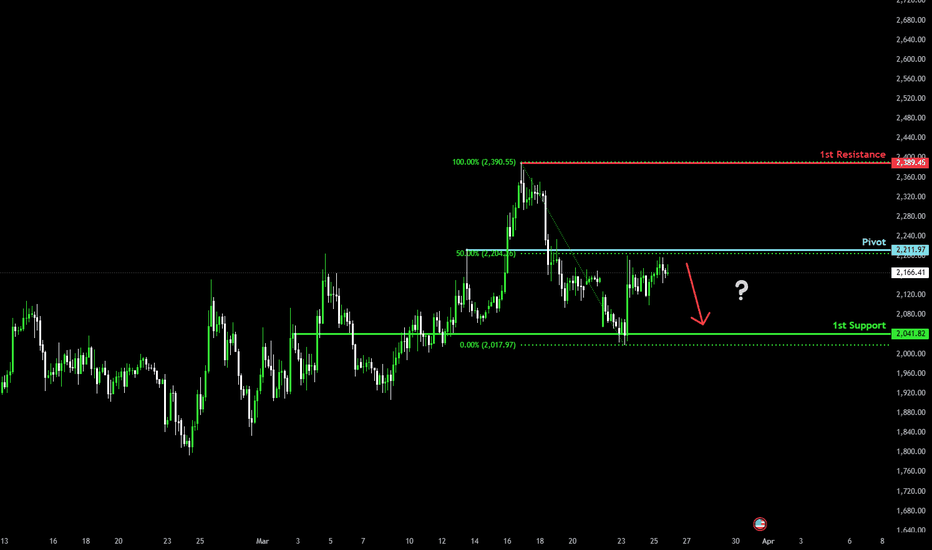 Bearish reversal setup?Ethereum (ETH/USD) is rising towards the pivot, which acts as a pullback resistance that aligns with the 50% Fibonacci retracement and could reverse towards the 1st support.