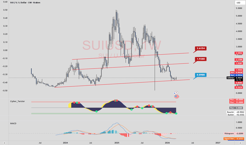 SUI at the macro golden pocketCRYPTOCAP:SUI has only printed series of 3 wave structures on the weekly time frame showing no impulsive motif wave despite large returns. This suggests its all corrective or a leading diagonal.
