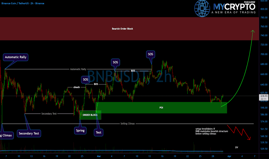 BNB respects 600 POI, upside toward 730-780 probableYello Paradiser! Did you catch the reaction from the key demand zone on BNB (#BNBUSDT), or are you still waiting while smart money already positioned at the lows?