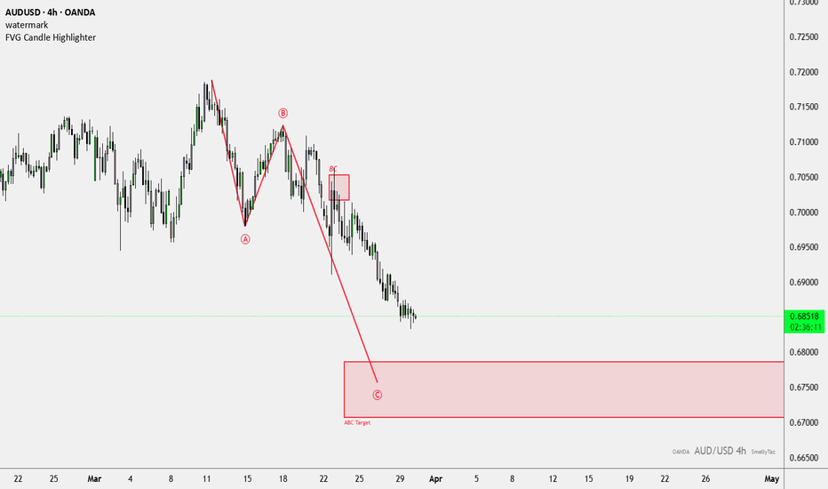 AUDUSD 4H Bearish ABC Still in MotionOANDA:AUDUSD continues to respect the bearish 4H sequence.