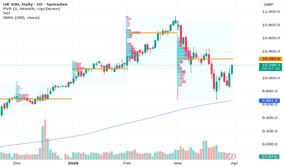 UK 100 Index – Facing a Potential Shift in SentimentDuring early March the UK 100 outperformed other European indices, in that it didn’t fall as much, when confronted with the challenge of the escalating Iran conflict. While general risk off sentiment saw selling of the UK’s primary index, its weighting towards multi-national corporates rather than s