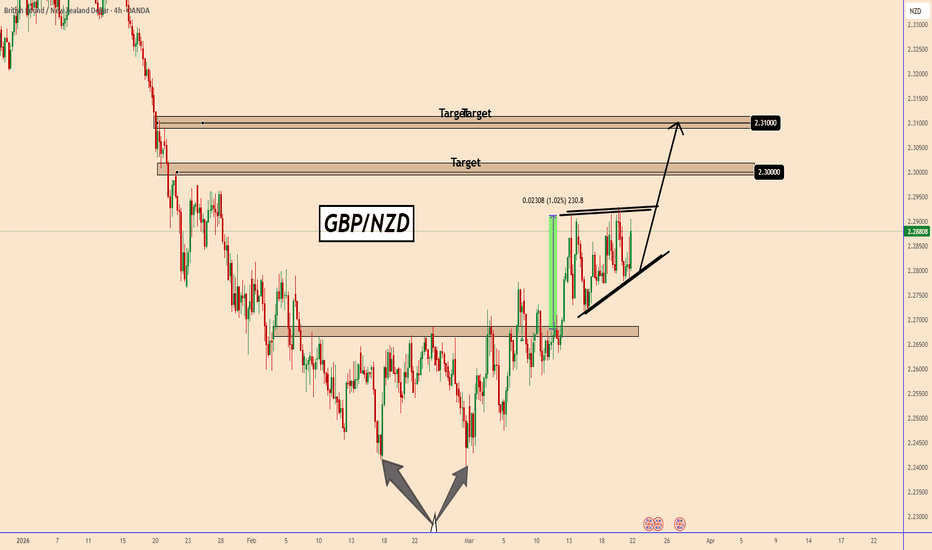 #GBPNZD: Two Targets, Once Strong Bullish Entry! ✴️ The GBP/NZD pair demonstrated a favourable reversal upon reaching our designated buying zone at 2.256, currently trading at 2.287. This indicates potential for continued upward momentum. We anticipate the price may advance towards the 2.32 level where a liquidity void is expected to be addressed.