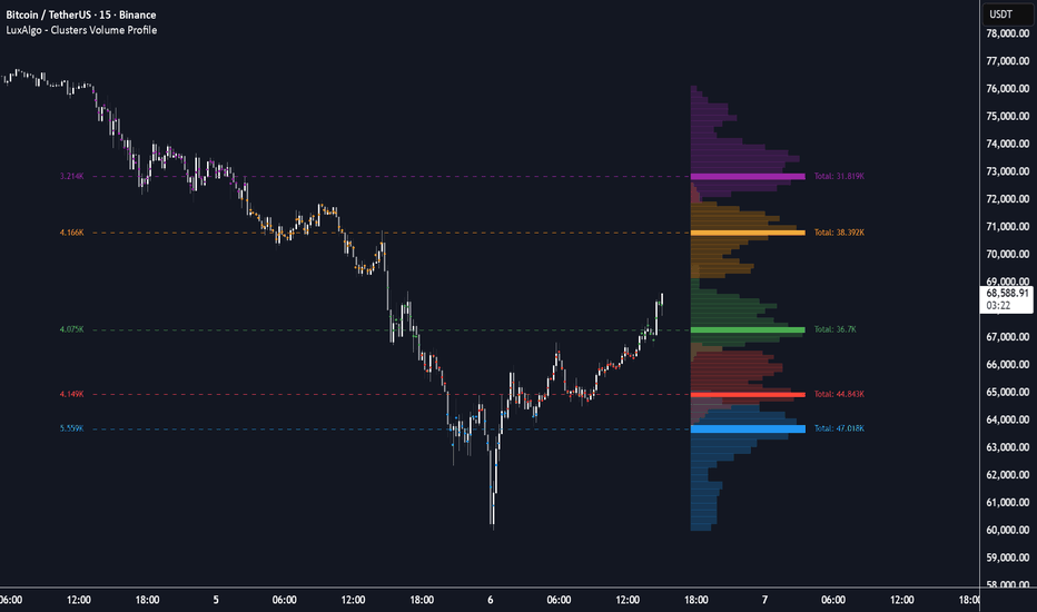 Clusters Volume Profile [LuxAlgo]The Clusters Volume Profile indicator utilizes K-Means clustering to categorize historical price action into distinct groups and generates individual volume profiles for each detected cluster. This tool provides a unique perspective on volume distribution by isolating price behaviors based on proximity rather than strictly chronological order.