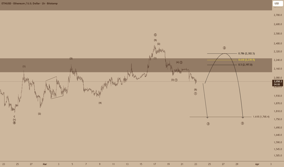 ETHUSD (1H): Forecast Remains BearishEthereum is currently transitioning into a corrective phase after completing a local impulsive structure to the upside. The recent rejection from the highs suggests weakening bullish momentum, with price now showing early signs of distribution on the lower timeframe.