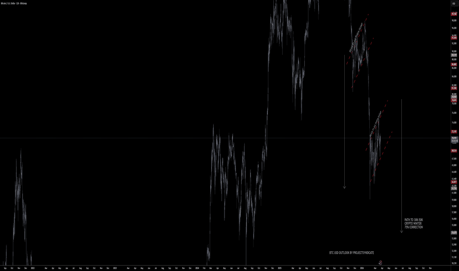 ❄️ 2026 Crypto Winter Forecast: Bitcoin is expected to experience a sharp correction (~75% drawdown) following the 2024 halving. The cycle peak